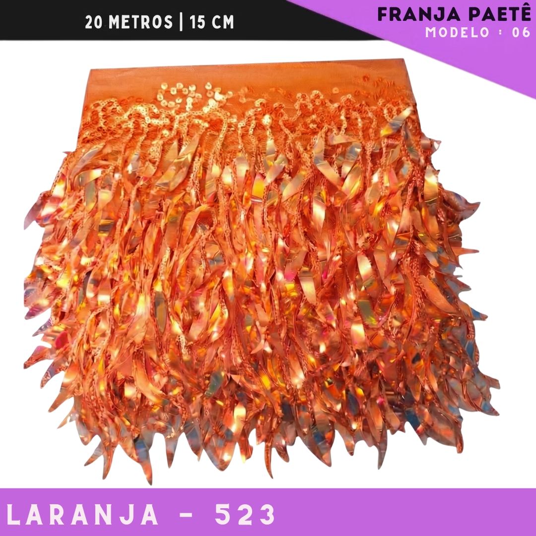 Franja de Paete Irisado Premium c/ lantejoula folhas - Ref:06 - Rolo C/ 9.10 mts COR:LARANJA