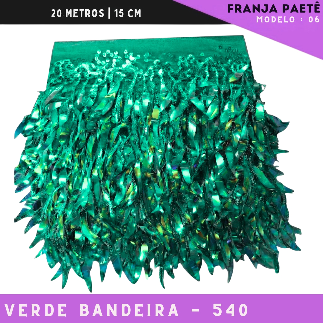 Franja de Paete Irisado Premium c/ lantejoula folhas - Ref:06 - Rolo C/ 9.10 mts COR:VERDE-BANDEIRA