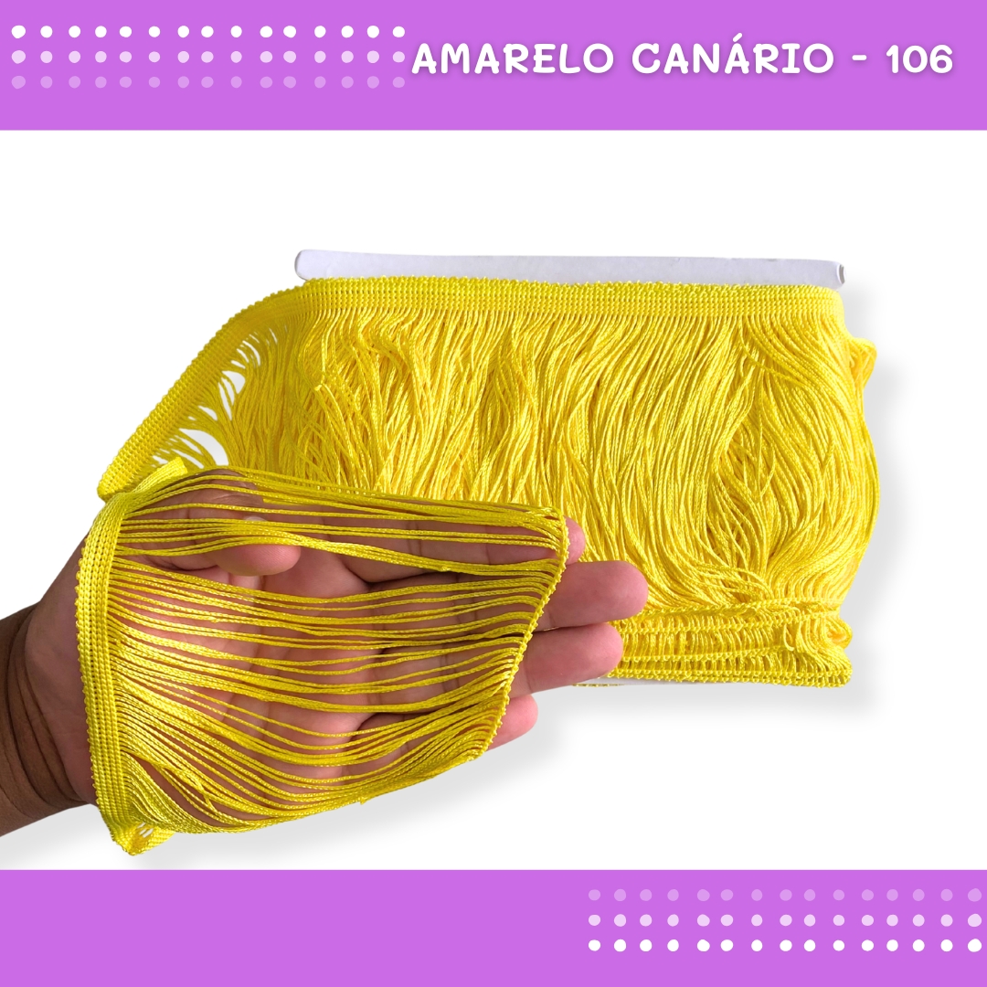 Franja de Tecido Acetinado - 15cm - Grade de Cores - Rolo C/10 Mts COR:AMARELO-CANARIO-106