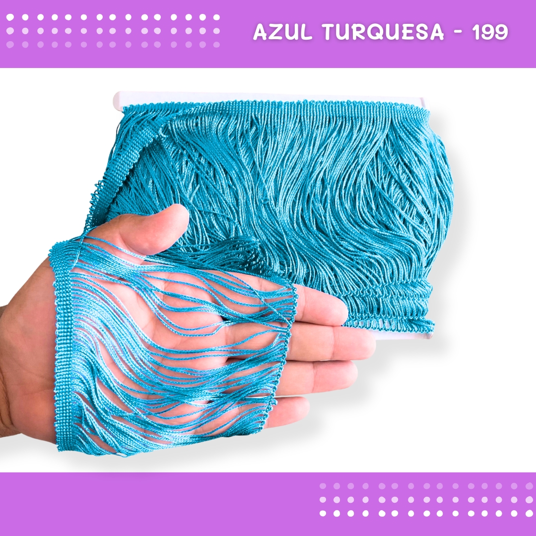 Franja de Tecido Acetinado - 15cm - Grade de Cores - Rolo C/10 Mts COR:AZUL-TURQUESA-199