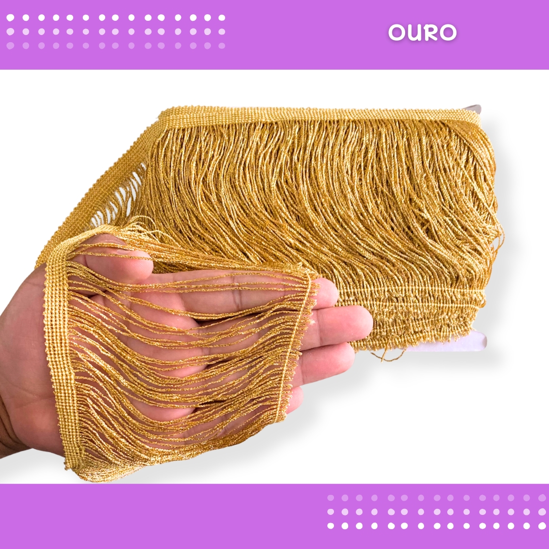 Franja de Tecido Acetinado - 15cm - Grade de Cores - Rolo C/10 Mts COR:OURO