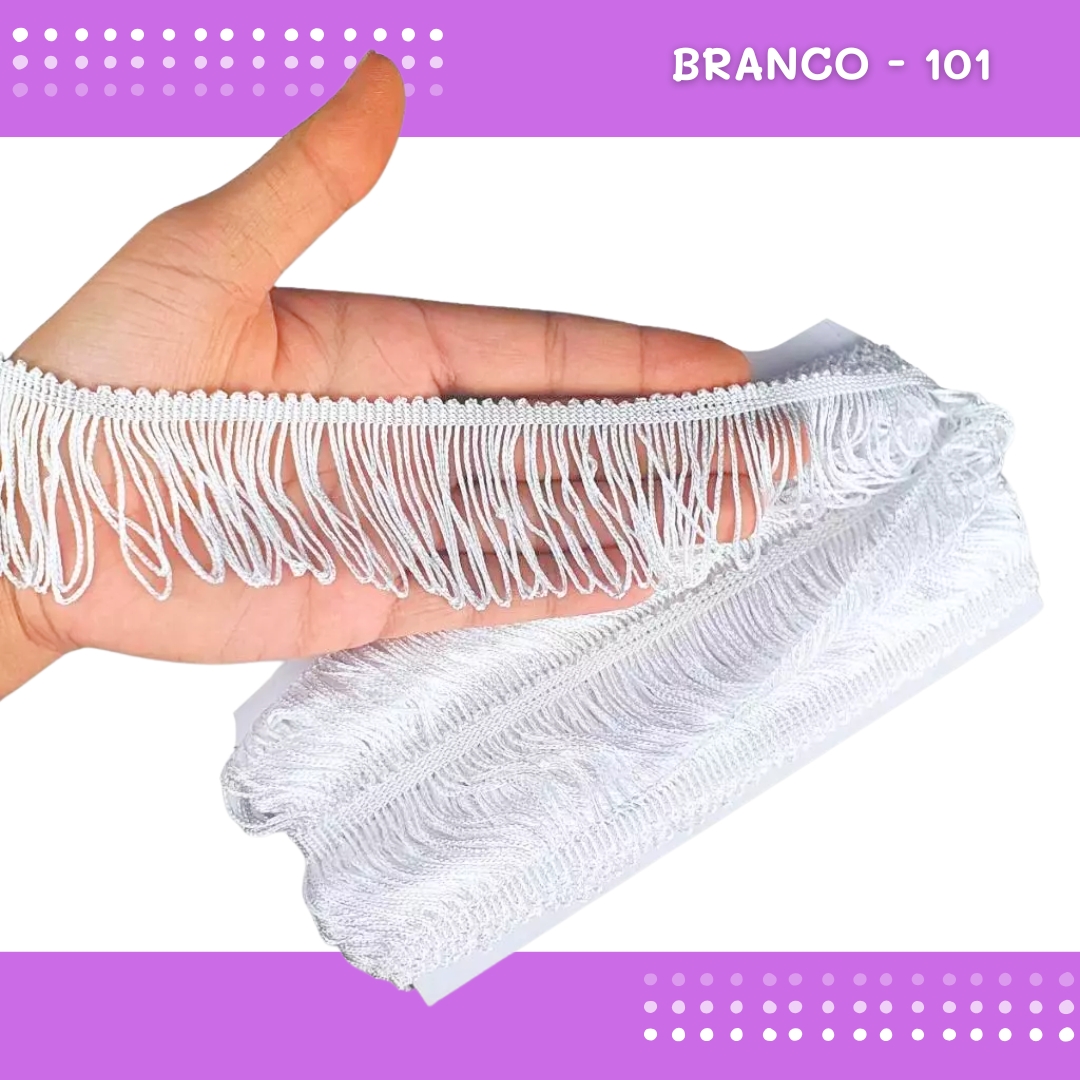 Franja de Tecido - 5 cm Rolo com 10 Metros Composição: 100% Poliéster Cada pacote contém 10 metros da mesma cor. Utilizado em produção de roupas, acessórios e artesanatos em geral. Avisos e informações: - Envio direto de São Paulo! - Produto pronto para entrega - Envio Rápido!