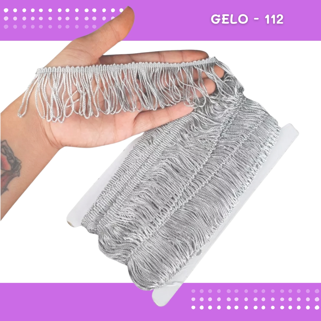 Franja de Tecido Acetinado - 5cm - Grade de Cores - Rolo C/10 Mts COR:GELO-112