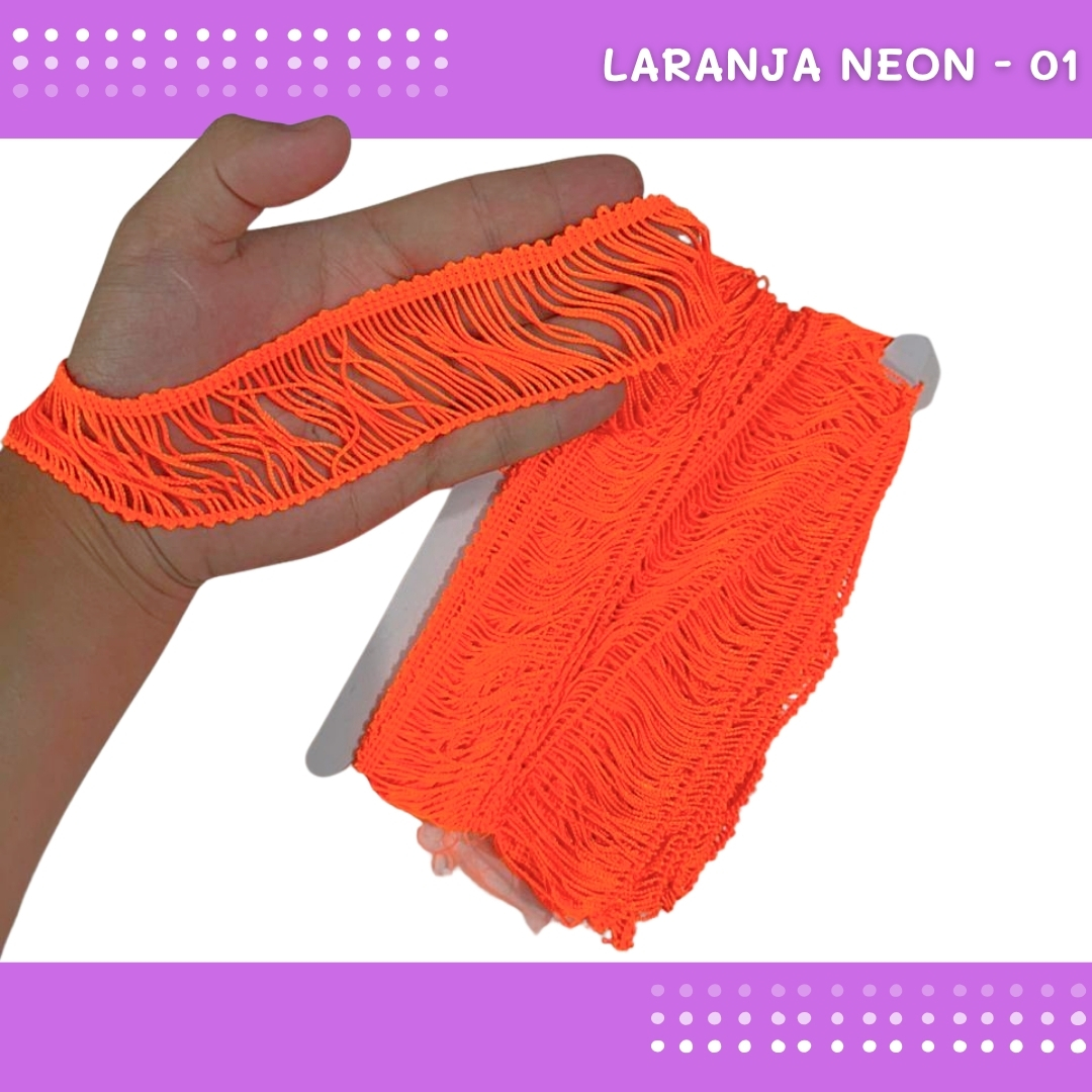 Franja de Tecido Acetinado - 5cm - Grade de Cores - Rolo C/10 Mts COR:LARANJA-NEON-01