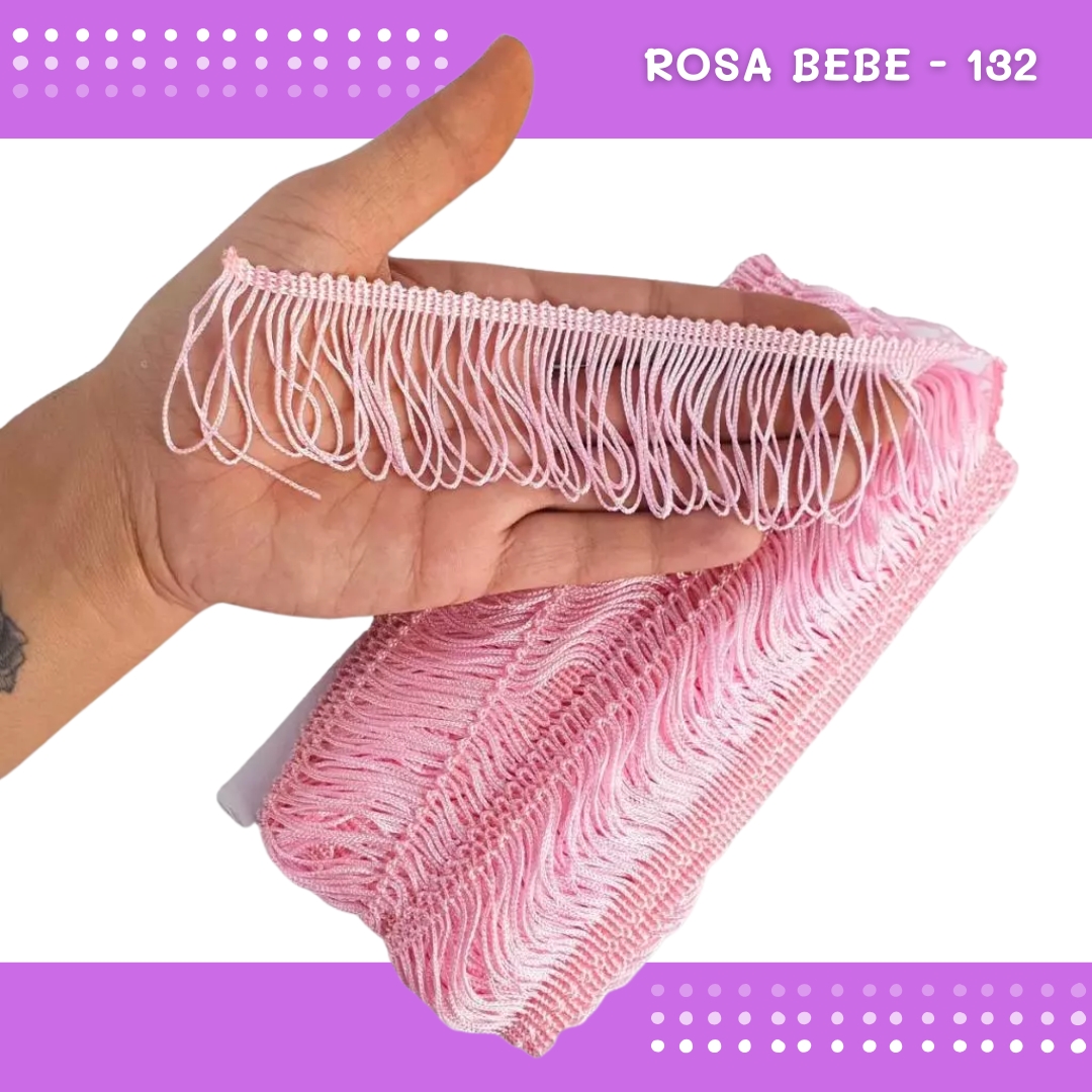Franja de Tecido Acetinado - 5cm - Grade de Cores - Rolo C/10 Mts COR:ROSA-BEBE-132