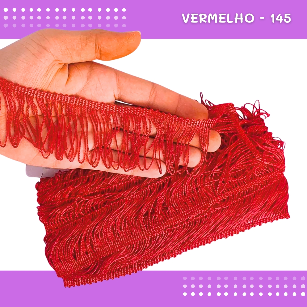 Franja de Tecido Acetinado - 5cm - Grade de Cores - Rolo C/10 Mts COR:VERMELHO-145