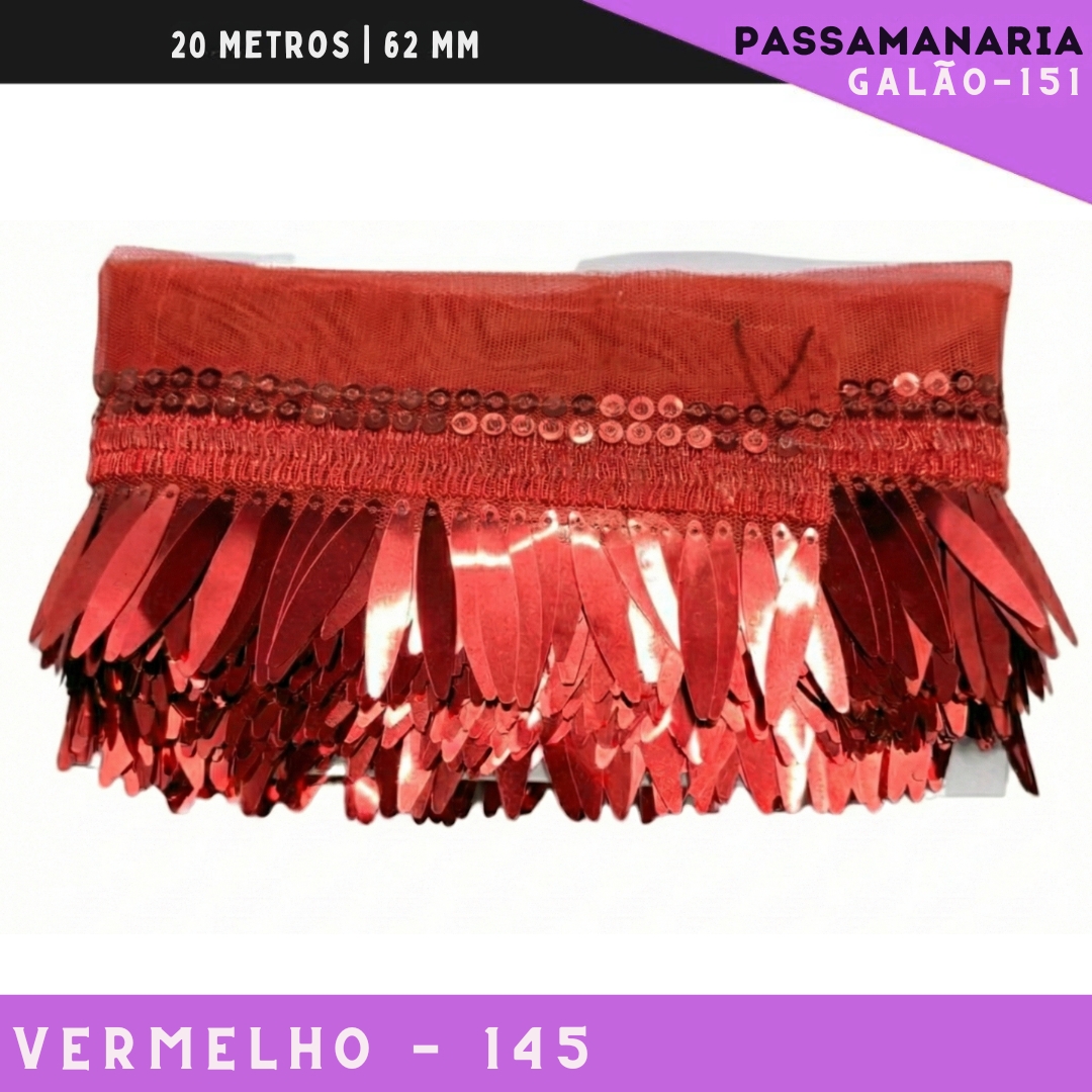Franja Passamanaria Penas Galao-151 - Tam: 62mm - Rolo C/9.14 Mts Cor:Vermelho-145