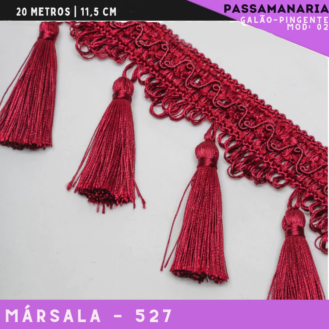 Galão de Franja Pingente Tassel Luxo Premium - Rolo c/20 mts - 11.5 cm - Grade de Cores COR:BORDO-527