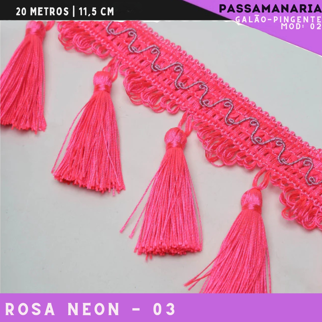 Galão de Franja Pingente Tassel Luxo Premium - Rolo c/20 mts - 11.5 cm - Grade de Cores COR:ROSA-NEON-03