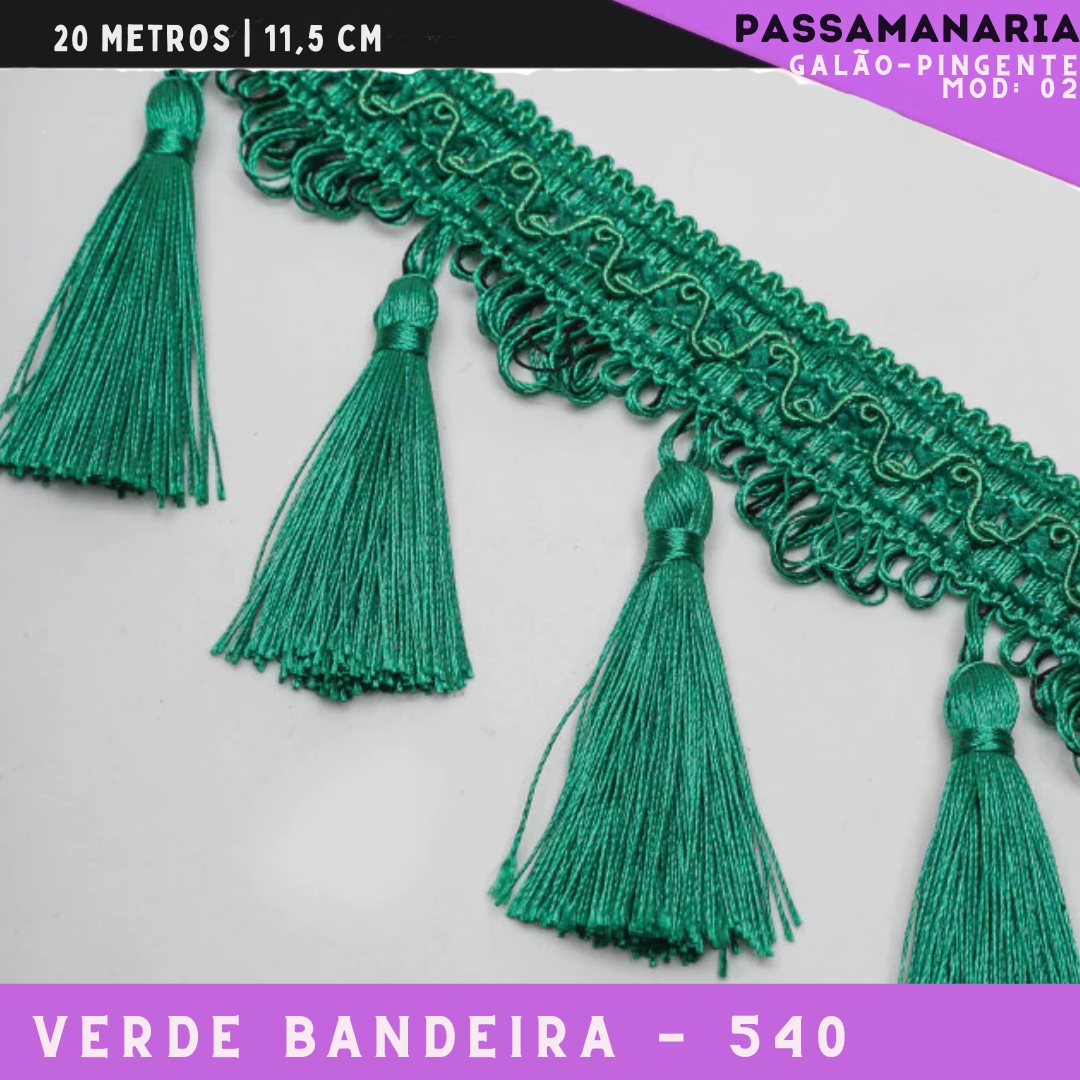 Galão de Franja Pingente Tassel Luxo Premium - Rolo c/20 mts - 11.5 cm - Grade de Cores COR:VERDE-BANDEIRA-540