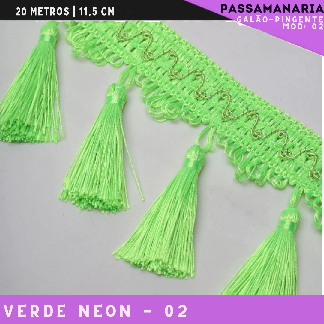 Galão de Franja Pingente Tassel Luxo Premium - Rolo c/20 mts - 11.5 cm - Grade de Cores COR:VERDE-NEON-02