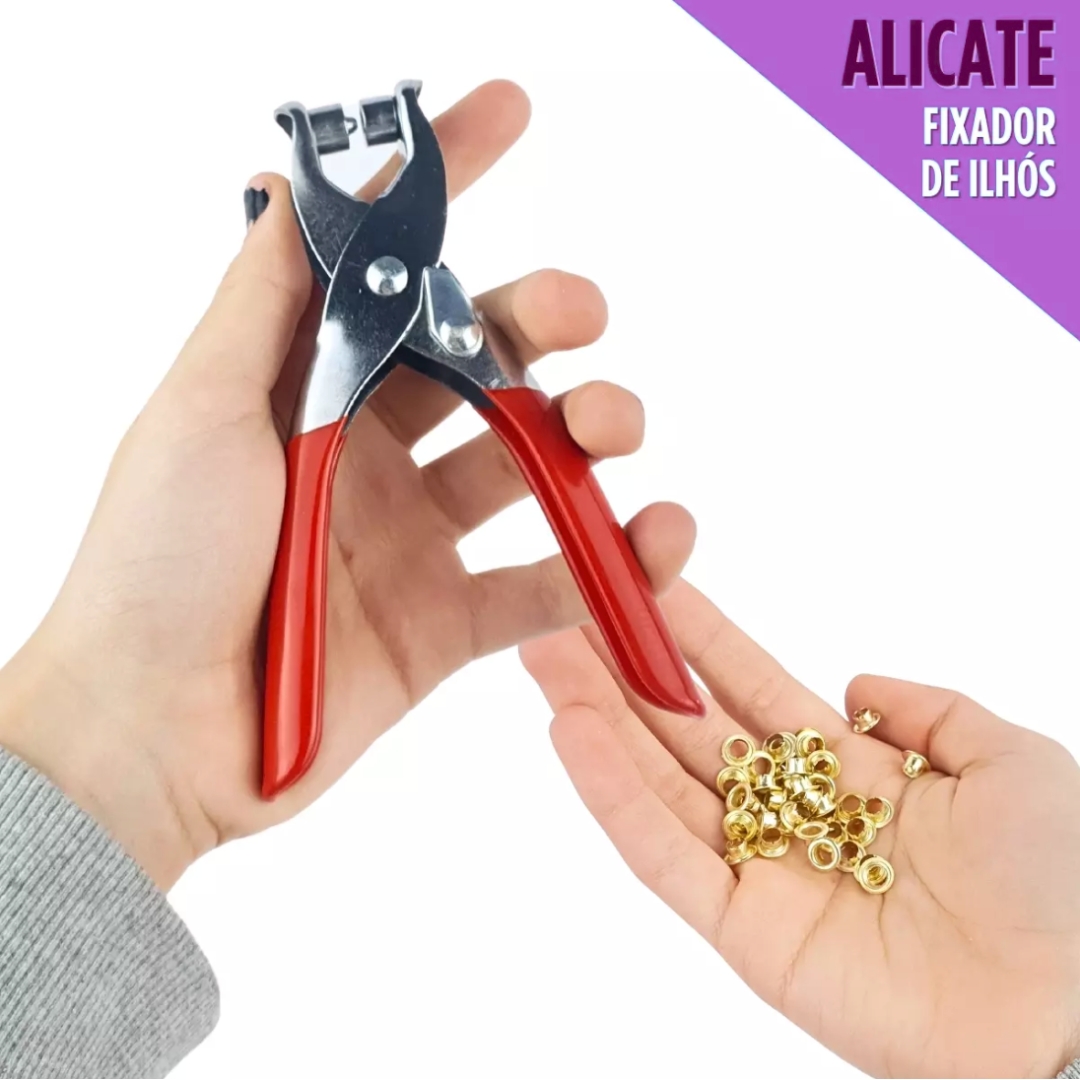 Alicate Aplicar Ilhós Colocar Pregar com 100un Ilhós 15cm