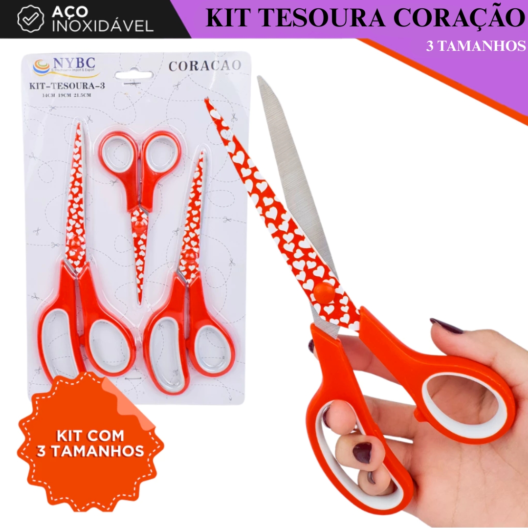 Kit C/ 3 Tesouras Decorada Para Costura E Artesanato - Coracao