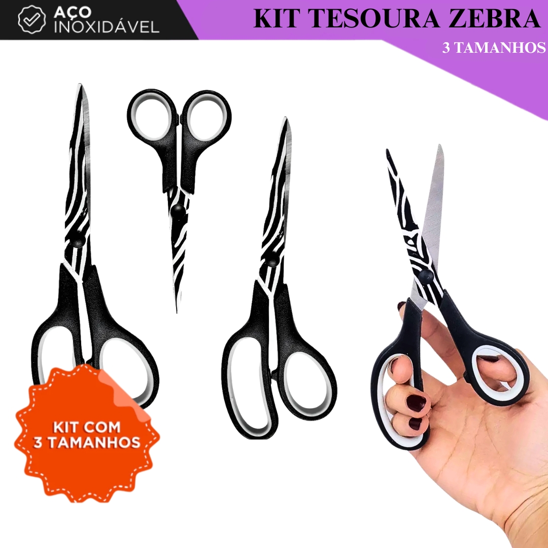 Kit C/ 3 Tesouras Decoradas Para Costura e Artesanato - Zebra
