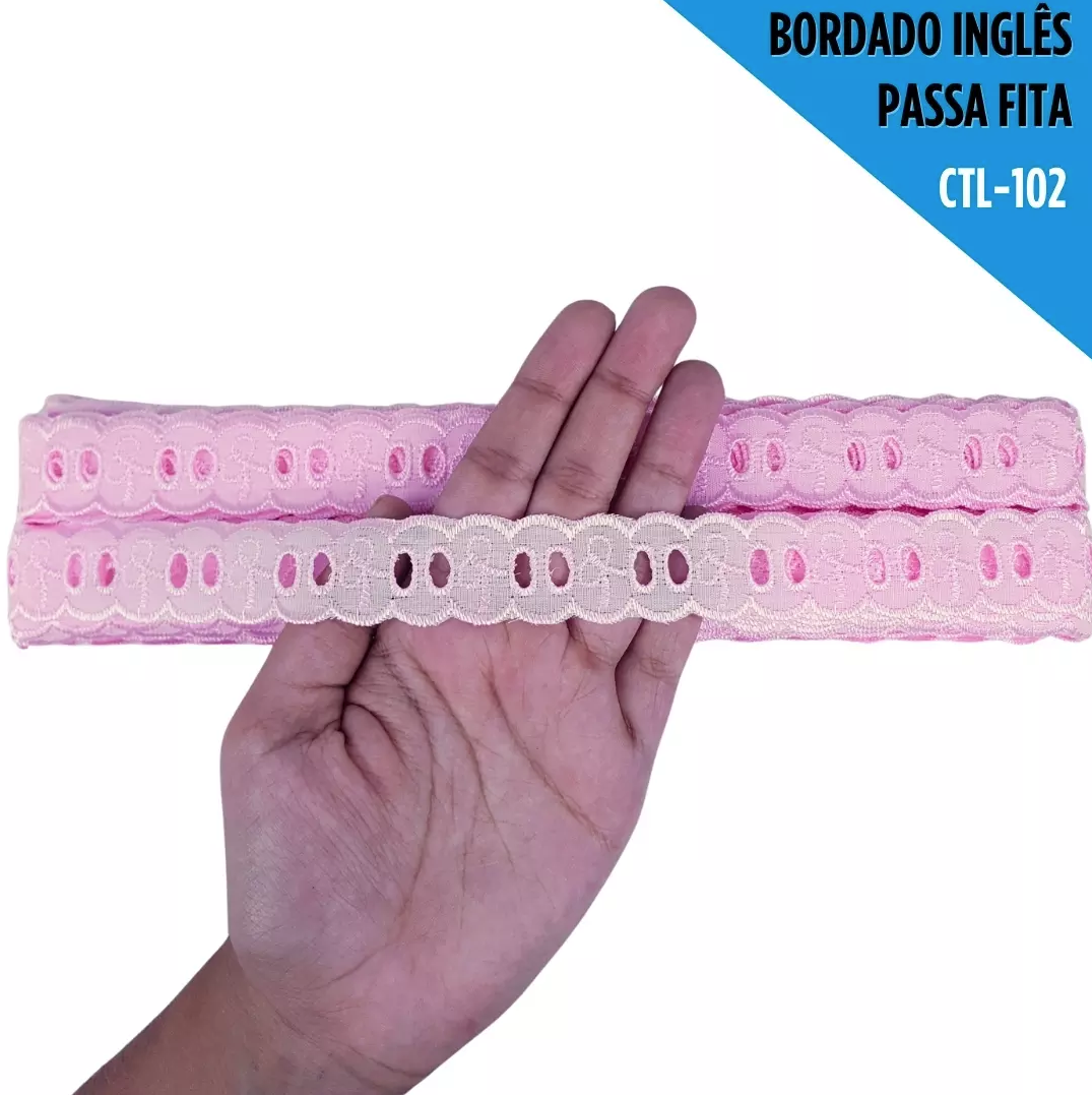 Passa Fita Bordado Em Lese - Ctl-102 - 2.5 Cm - Rl C/13.7 Mts Cor:Rosa-Bebe-132
