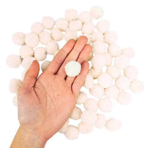 Pompom de pelúcia é muito fofo e macio.