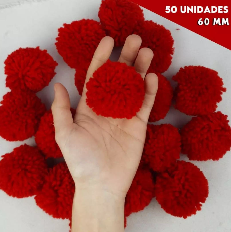 Pom Pom De Lã Fofinho - 60mm - Pct C/50 Unid. COR: VERMELHO-145