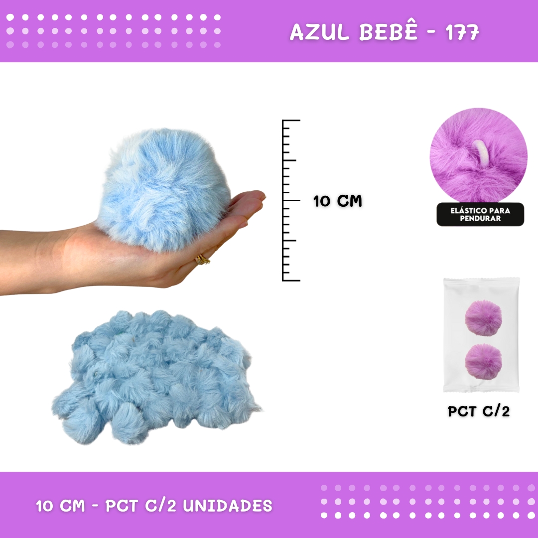 Pom Pom Pelucia - 100mm (10Cm) - Pct C/2 Unid. COR: AZUL-BEBE-177