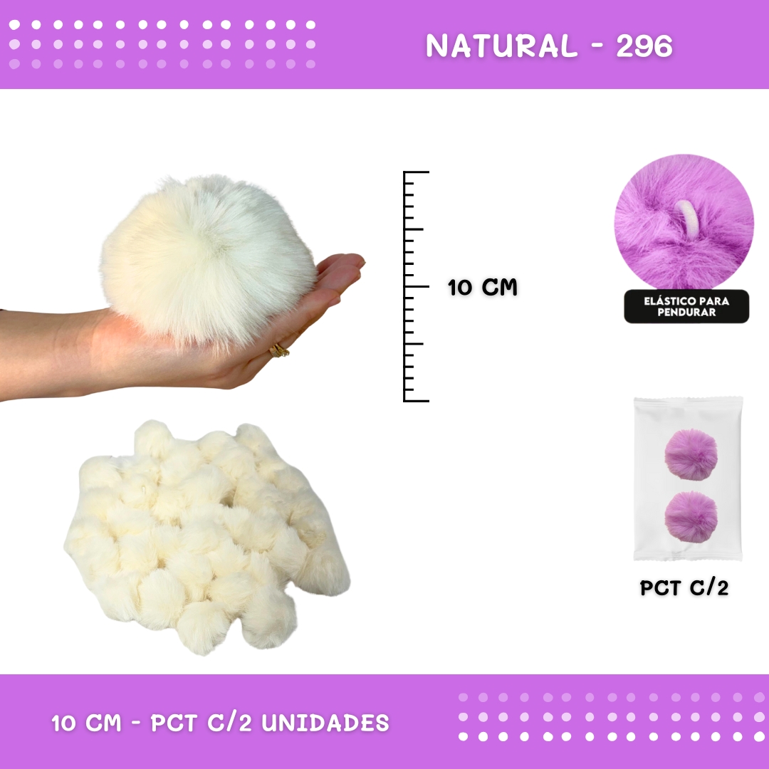 Pom Pom Pelucia - 100mm (10Cm) - Pct C/2 Unid. COR: NATURAL-296