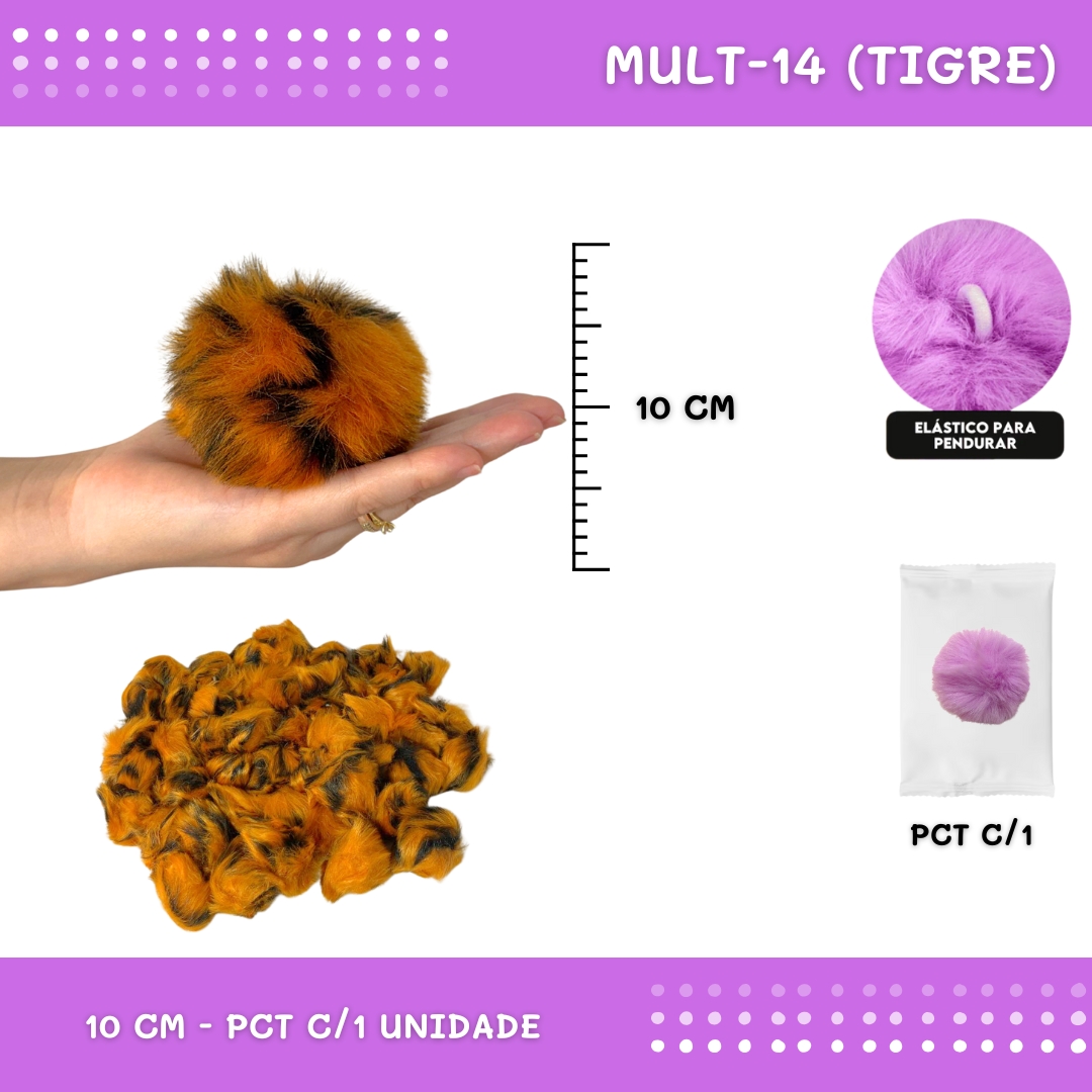 Pom Pom Pelucia - 100mm (10Cm) - Unidade COR: MULT-14 (TIGRE)
