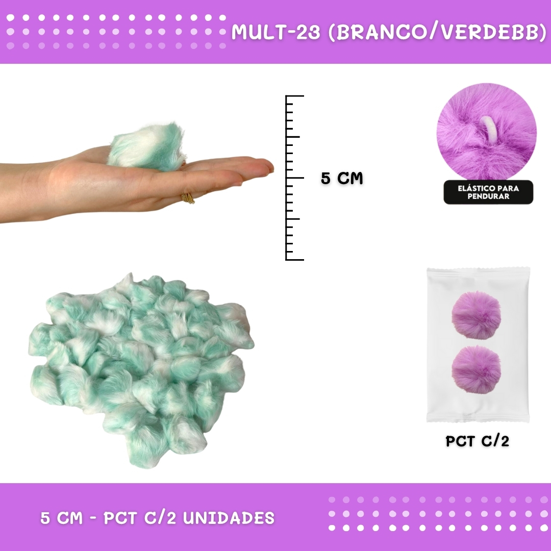 Pom Pom Pelucia - 50mm - Pct C/2 Unid. COR: MULT-23 (BRANCO/VERDEBB)