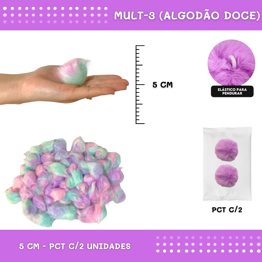 Pom Pom Pelucia - 50mm - Pct C/2 Unid. COR: MULT-3 (ALGODAO DOCE)