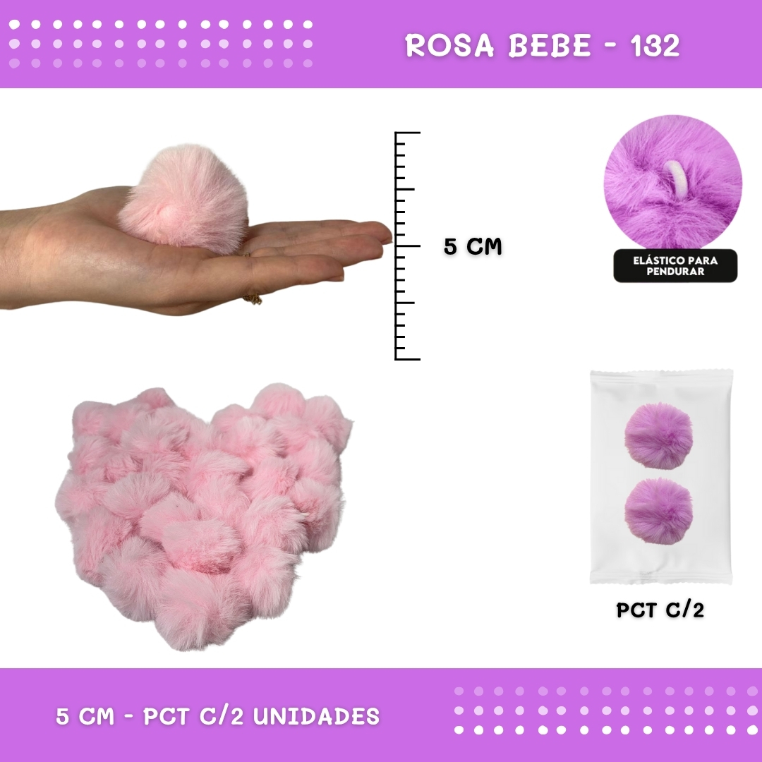 Pom Pom Pelucia - 50mm - Pct C/2 Unid. COR: ROSA-BEBE-132