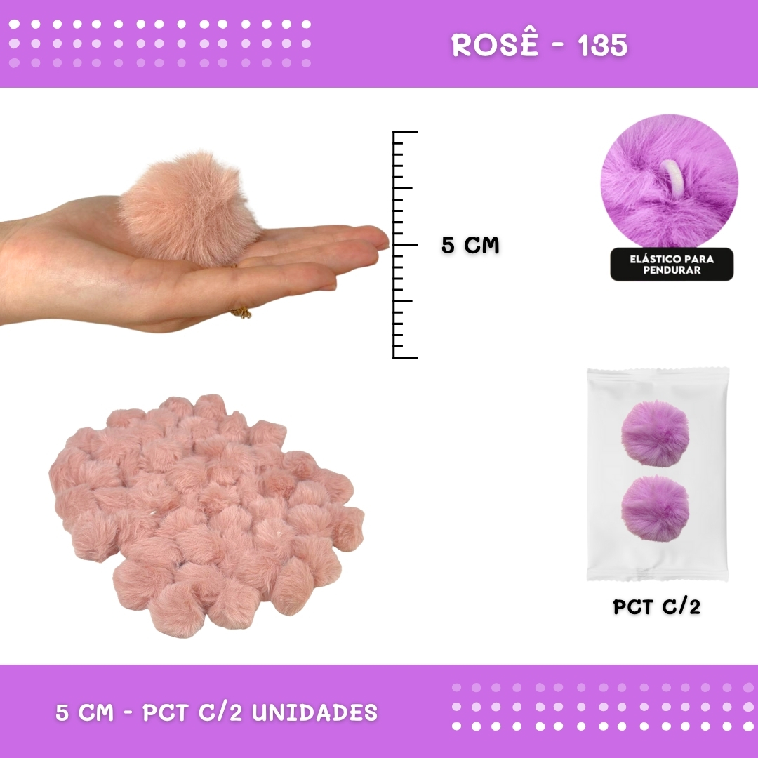 Pom Pom Pelucia - 50mm - Pct C/2 Unid. COR: ROSE-135