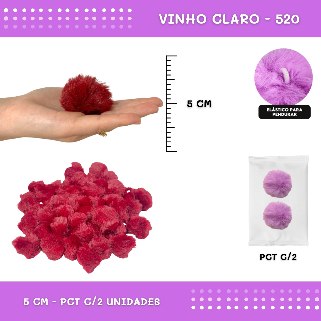 Pom Pom Pelucia - 50mm - Pct C/2 Unid. COR: VINHO-CLARO-520