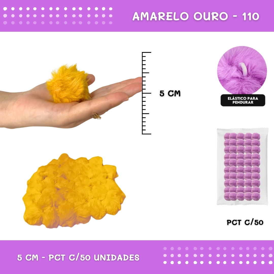 Pom Pom Pelucia - 50mm - Pct C/50 Unid. COR: AMARELO-OURO-110