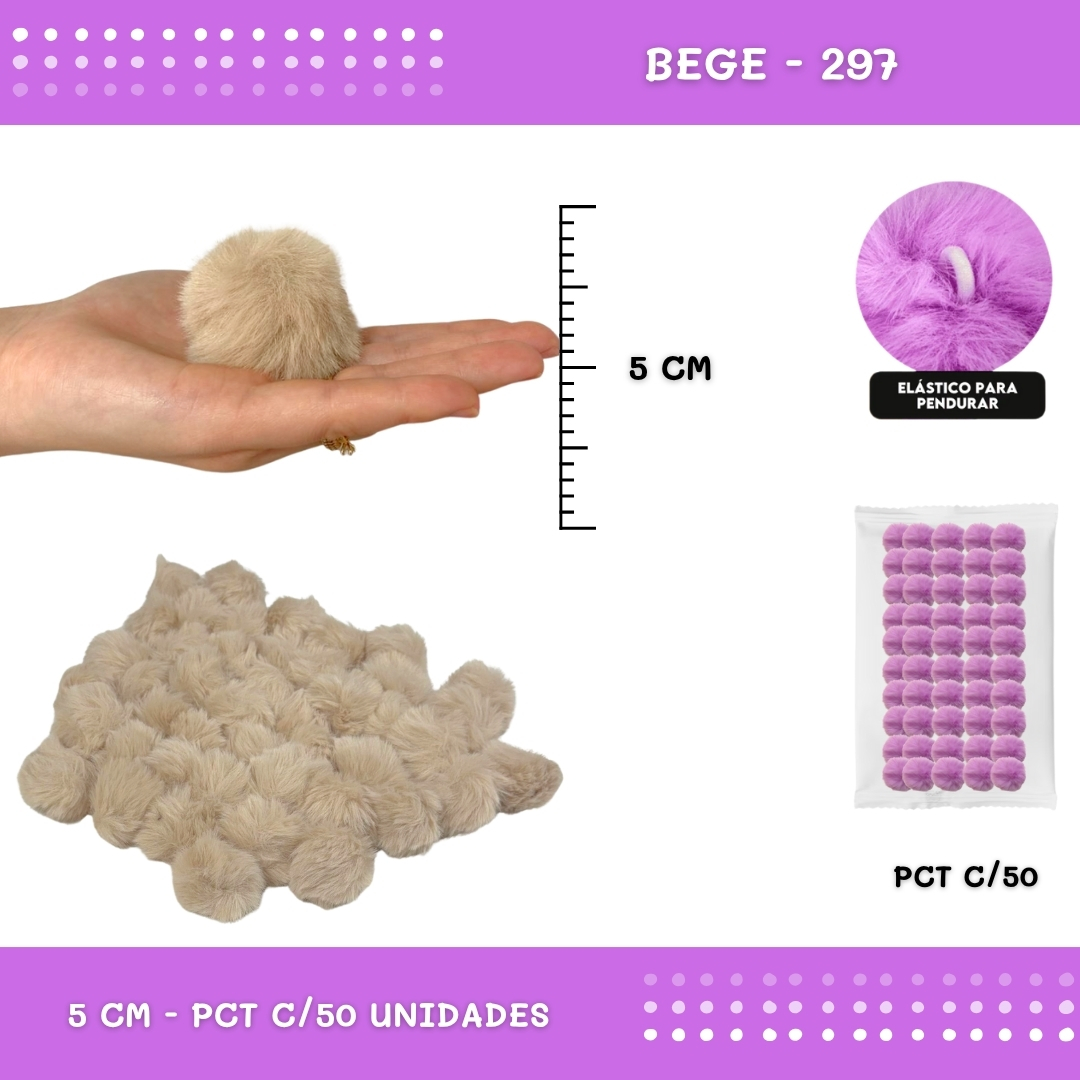 Pom Pom Pelucia - 50mm - Pct C/50 Unid. COR: BEGE-297