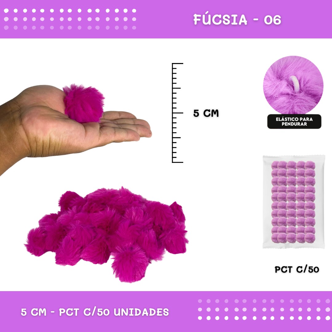 Pom Pom Pelucia - 50mm - Pct C/50 Unid. COR: Fucsia-06