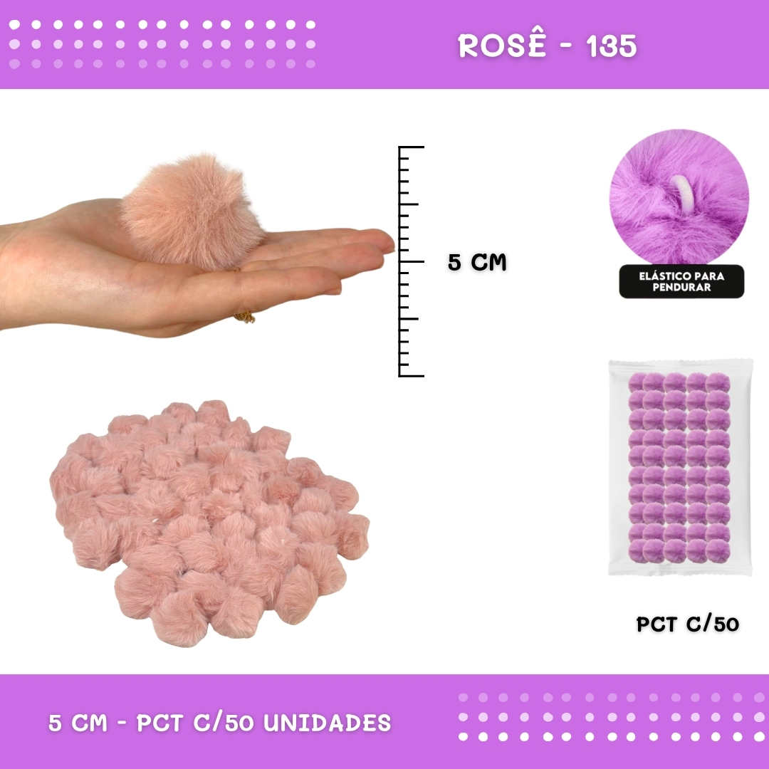 Pom Pom Pelucia - 50mm - Pct C/50 Unid. COR: ROSE-135