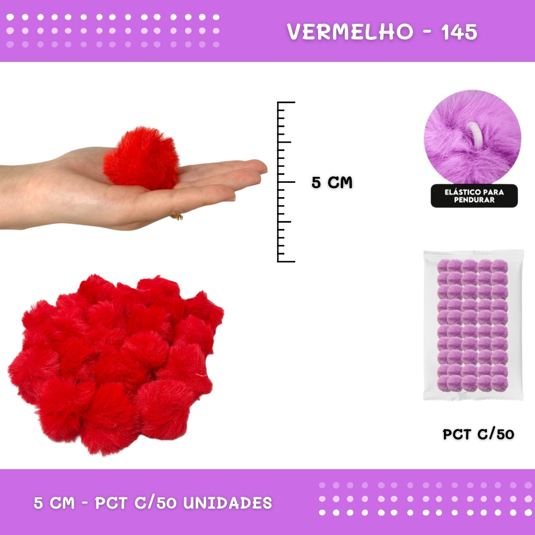 Pom Pom Pelucia - 50mm - Pct C/50 Unid. COR: VERMELHO-145