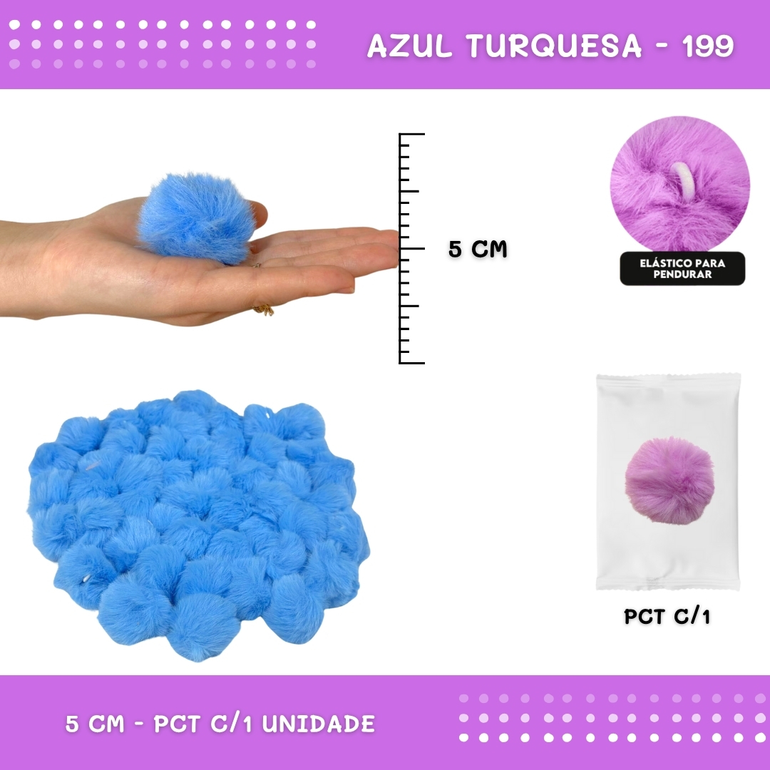 Pom Pom Pelucia - 50mm - Unidade COR: AZUL-TURQUESA-199