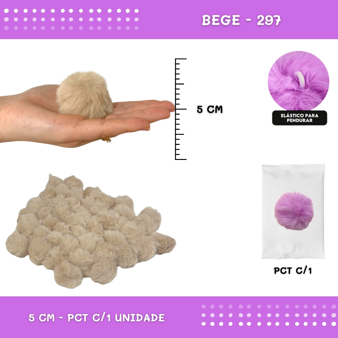 Pom Pom Pelucia - 50mm - Unidade COR: BEGE-297