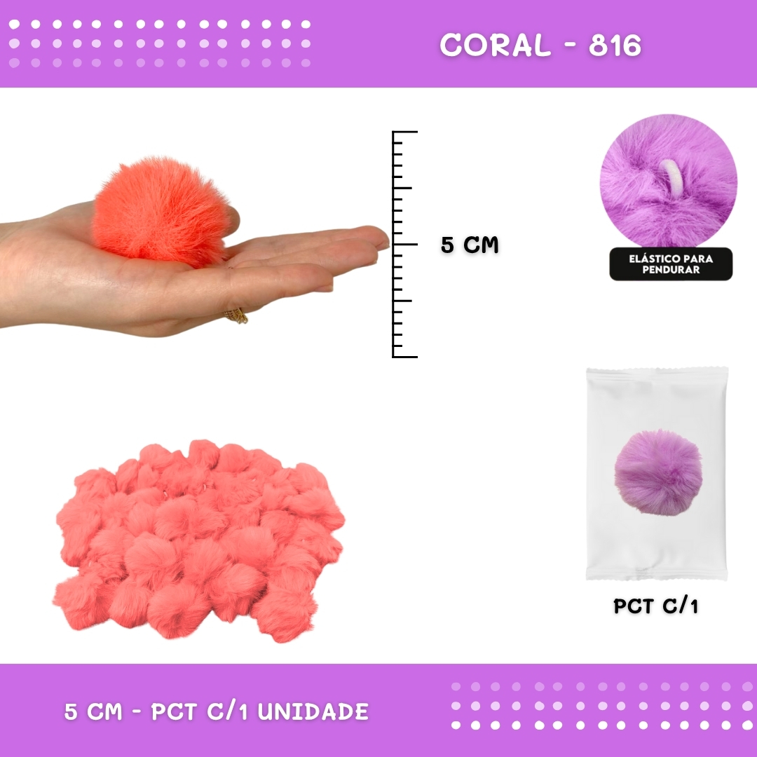 Pom Pom Pelucia - 50mm - Unidade COR: CORAL-816