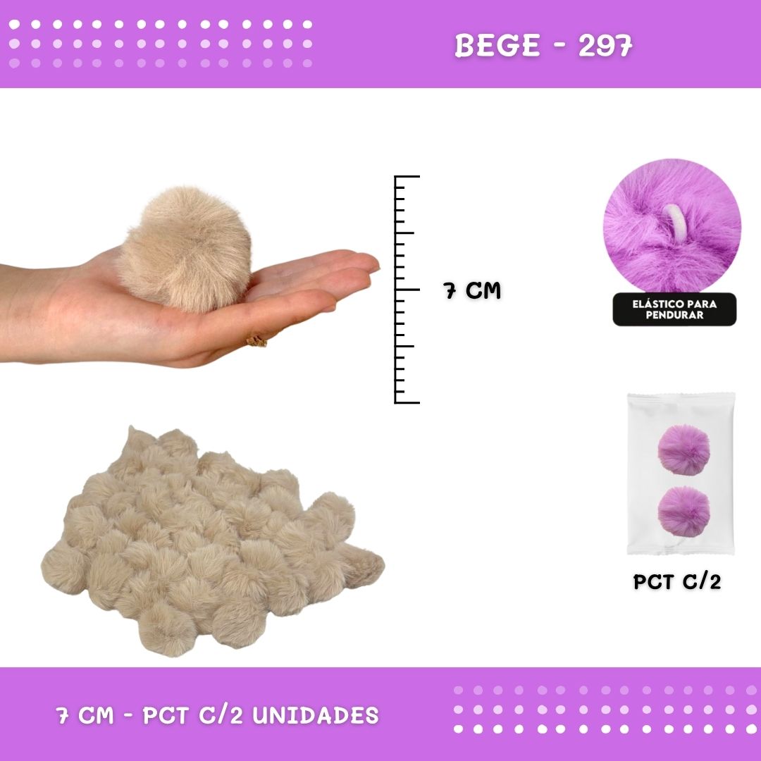Pom Pom Pelucia - 70mm - Pct C/2 Unid. COR: BEGE-297