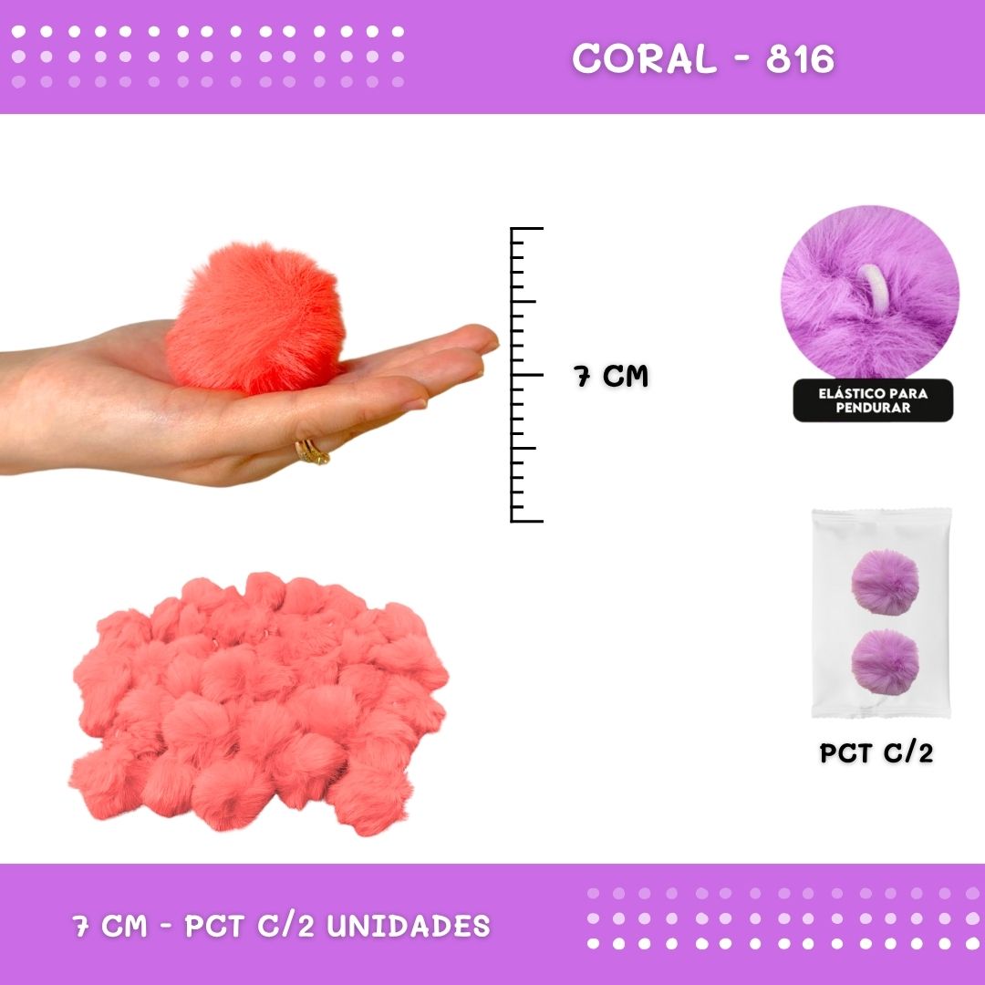 Pom Pom Pelucia - 70mm - Pct C/2 Unid. COR: CORAL-816