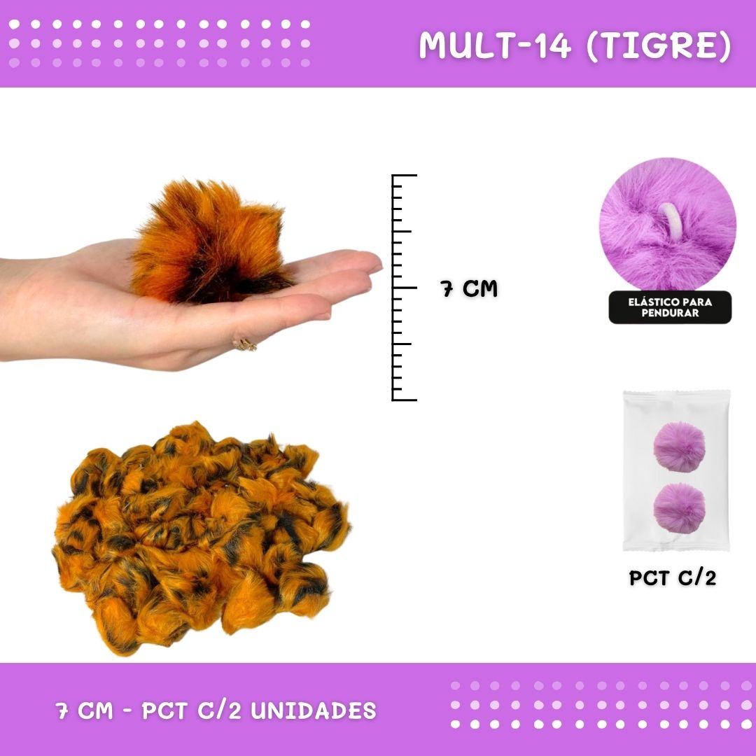 Pom Pom Pelucia - 70mm - Pct C/2 Unid. COR: MULT-14 (TIGRE)