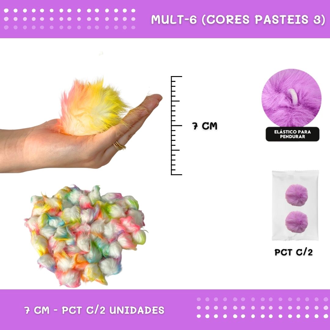 Pom Pom Pelucia - 70mm - Pct C/2 Unid. COR: MULT-6 (CORES PASTEIS 3)