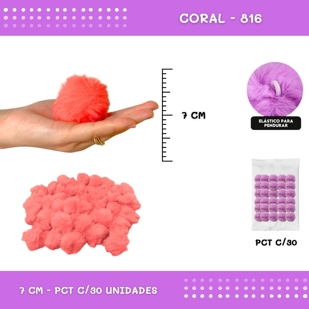 Pom Pom Pelucia - 70mm - Pct C/30 Unid. COR: CORAL-816