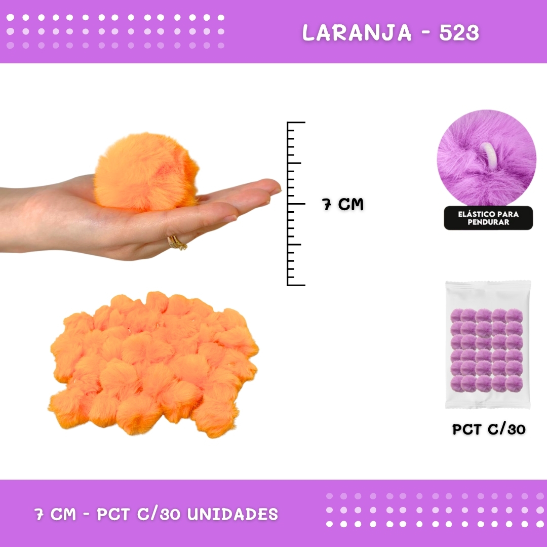 Pom Pom Pelucia - 70mm - Pct C/30 Unid. COR: LARANJA-523