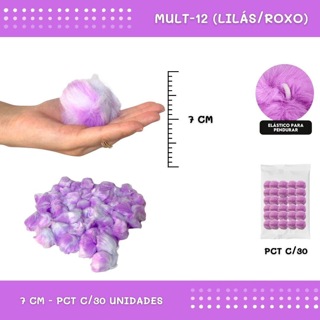 Pom Pom Pelucia - 70mm - Pct C/30 Unid. COR: MULT-12 (LILAS/ROXO)
