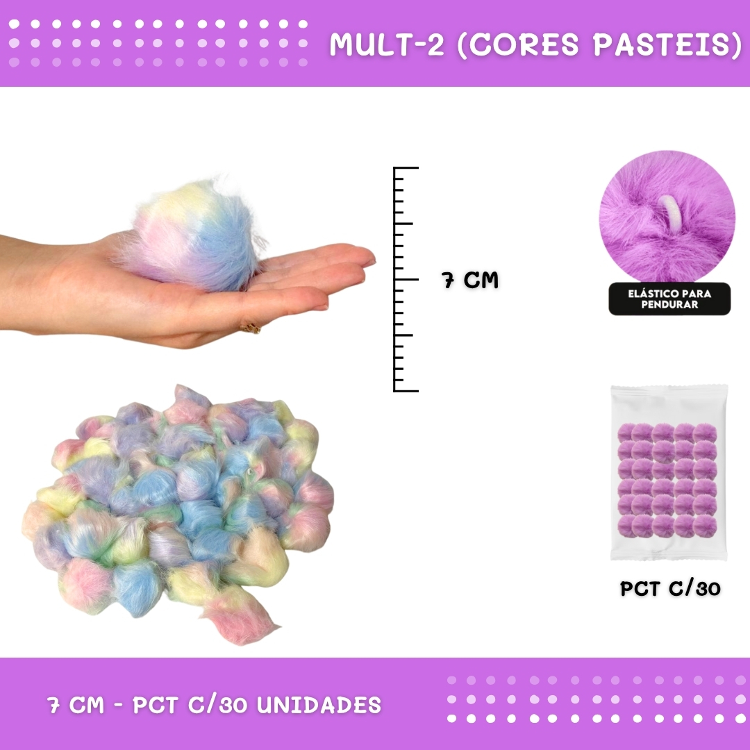 Pom Pom Pelucia - 70mm - Pct C/30 Unid. COR: MULT-2 (CORES PASTEIS)