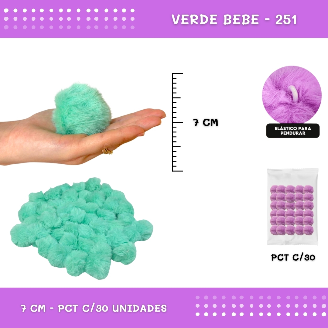 Pom Pom Pelucia - 70mm - Pct C/30 Unid. COR: VERDE-BEBE-251
