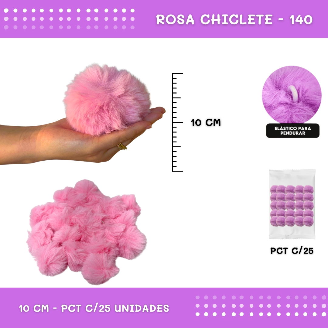 Pom Pom Pelucia C/Elastico - 100mm (10Cm) - Pct C/25 Unid. COR: ROSA-CHICLETE-140