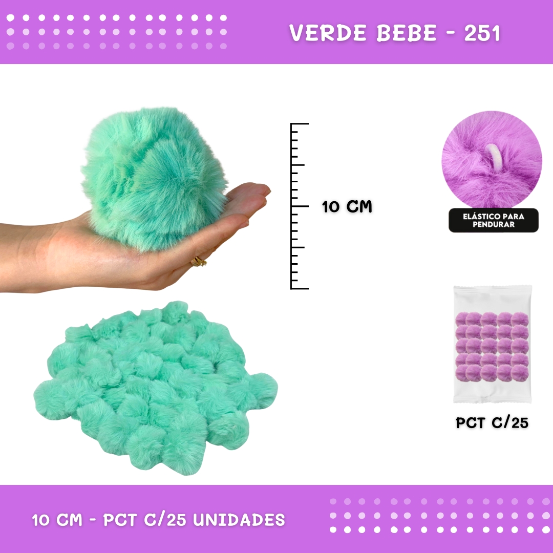 Pom Pom Pelucia C/Elastico - 100mm (10Cm) - Pct C/25 Unid. COR: VERDE-BEBE-251