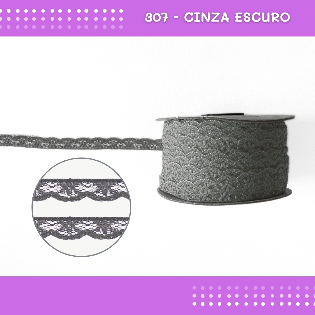 Renda De Poliamida R001 - 09mm - Rolo C/ 50 Mts Cor:Cinza-Escuro-307