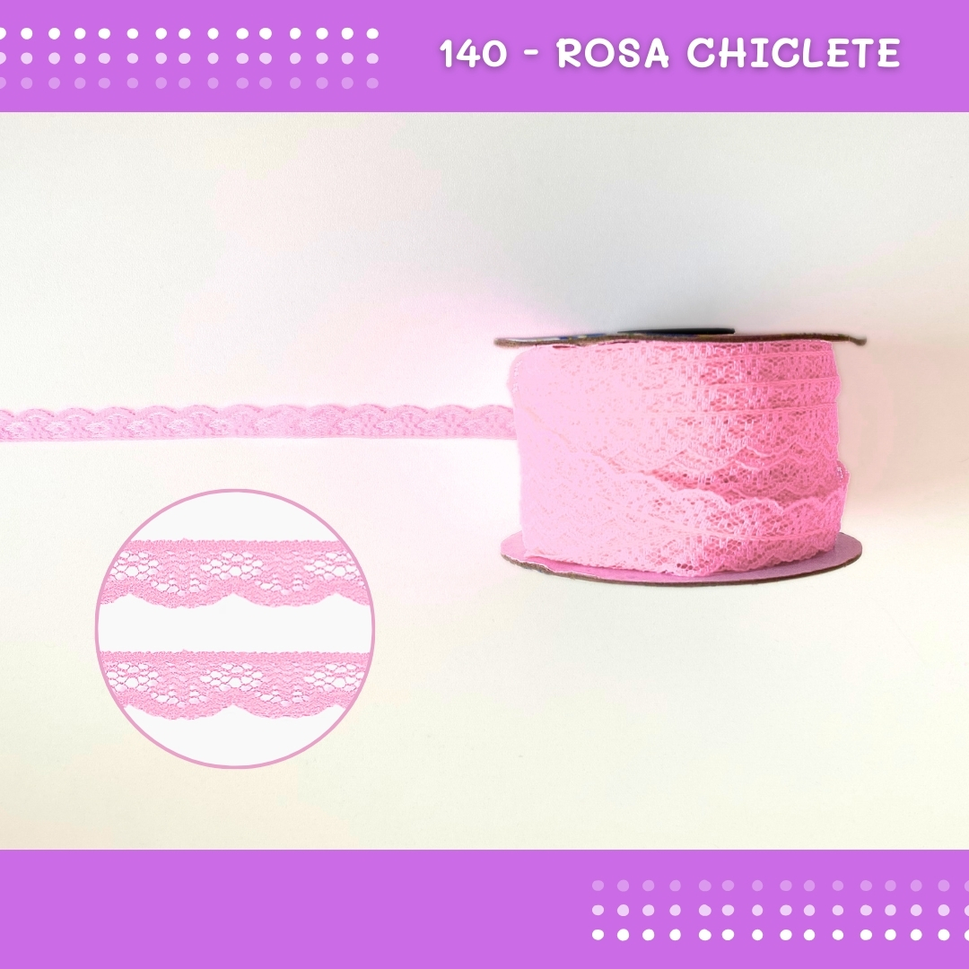 Renda De Poliamida R001 - 09mm - Rolo C/ 50 Mts Cor:Rosa-Chiclete-140